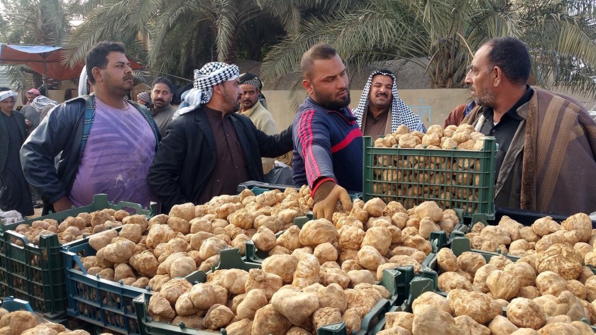 Terfezia are dark reddish, dense and more prized than Tirmania. Both resemble smallish round potatoes – some gnarled and the most favoured are smooth – and do not have the same pungent flavour as the European or even Moroccan truffle. The taste is somewhere between a mushroom and an artichoke. Nor are they as expensive as European truffles. In 2019 excellent quality Iraqi truffles cost just $3 for 500grams and a good forager can expect to collect between 2-4 kilos per day.
