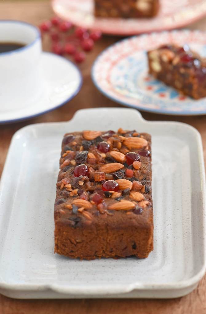 | Kerala | Rich sponge and fruit | Dates, cherries, dried orange peel, cinnamon, clove, cashews | White sugar | No | Dusted with icing sugar |
