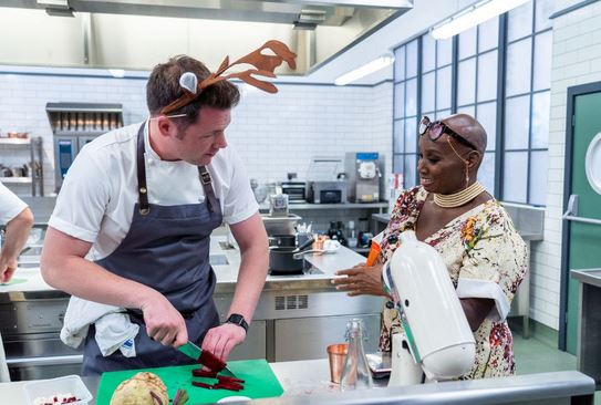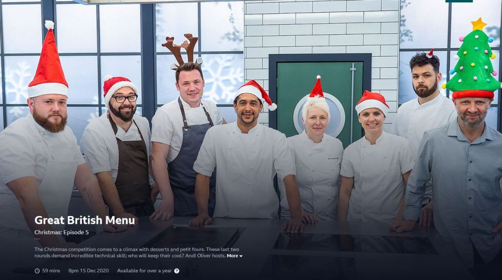 Tommy Banks (of The Black Swan restaurant in Oldstead), seen here with other contestants and with judge Andi Oliver, has just won a course in the Great British Menu Christmas Special – and guess with what – root vegetable mince pies and sweet woodruff bourbon eggnog. Have a good one, everyone.