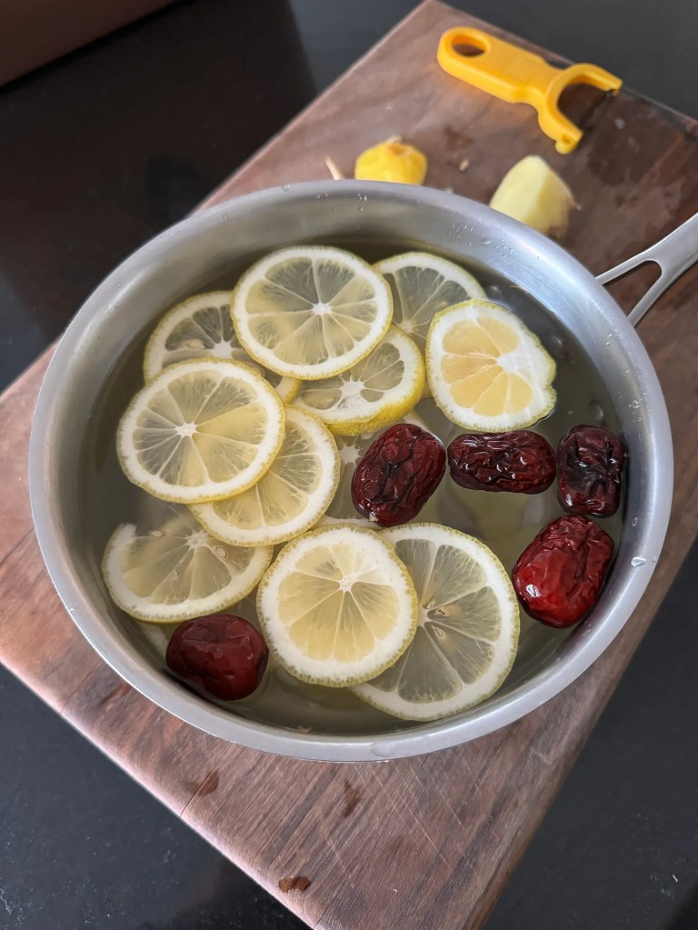 But I chose today to do Christina Chaey’s Lemon, Ginger and Jujube Tea from her site Gentle Foods