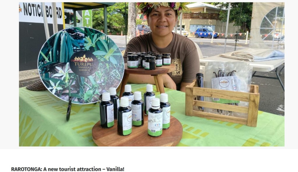 I first came across fresh vanilla, however, when I visited the Cook Islands and specifically Rarotonga. Vanilla has grown in the Cook Islands since its introduction there in 1942. The island produces ideal conditions for its growth. At that time it wasn’t grown commercially but rather as a hobby which might become a business. Lafala Turepu set up Turepu Vanilla in 2017 with an aim to produce a viable export product. She developed pastes, extracts and packs of vanilla. Today Turepu Vanilla is exported to the USA.